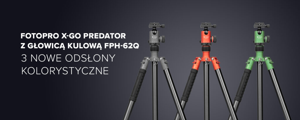 Przedstawiamy trzy nowe odsłony kolorystyczne niezawodnego X-go Predatora: Statyw Fotopro X-go Predator z głowicą kulową FPH-62Q – szary Statyw Fotopro X-go Predator z głowicą kulową FPH-62Q – pomarańczowy Statyw Fotopro X-go Predator z głowicą kulową FPH-62Q – zielony X-go Predator to solidny, aluminiowy statyw wyposażony w głowicę kulową oraz funkcję monopodu, a zarazem „większy brat” […]