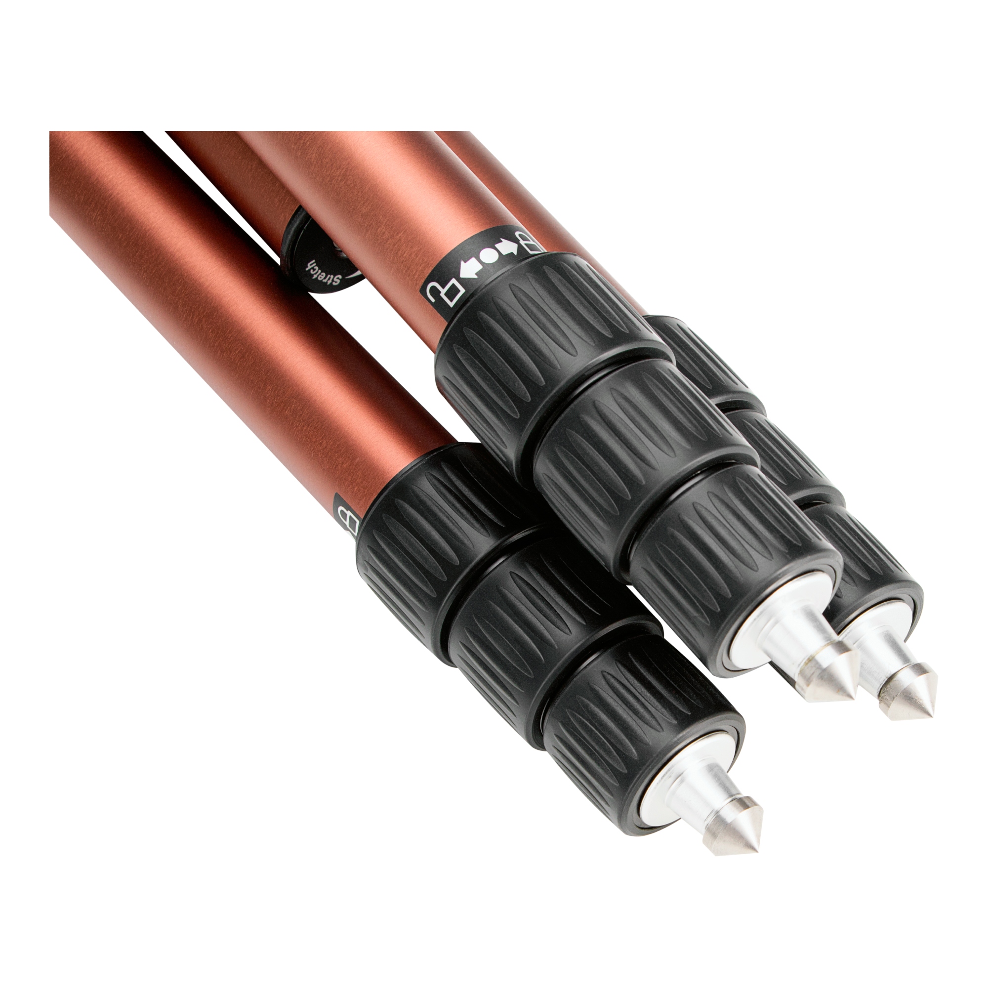 Statyw posiada trójstopniowy system nachylenia nóg, które składają się z czterech sekcji. Poszczególne sekcje blokowane są za pomocą wygodnego w użyciu systemu obrotowych zacisków o nazwie T-Lock.